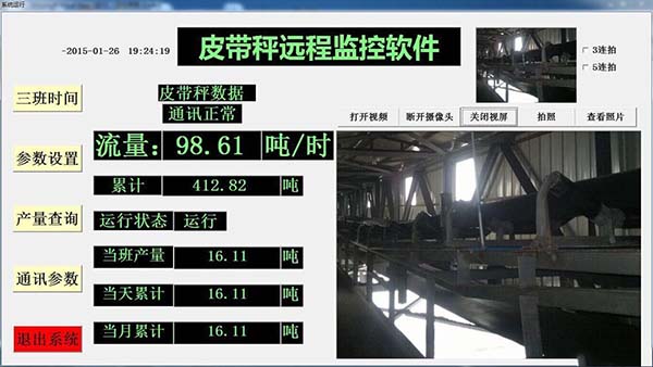 系統(tǒng)有視頻監(jiān)視功能,監(jiān)視計(jì)量儀器及相關(guān)輸煤狀態(tài),并存儲相關(guān)圖像。